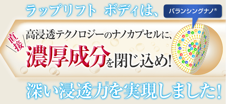 【ラップリフトボディ】高浸透化技術の浸透ナノプセル配合!美白ボディクリーム