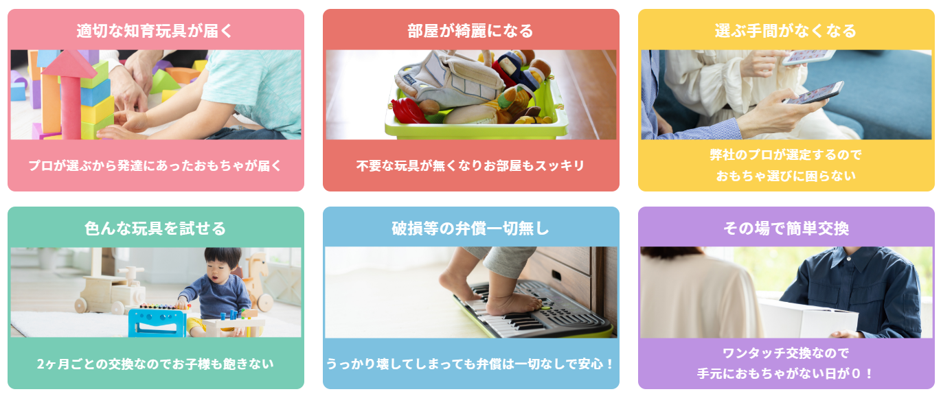 • 色々な種類のおもちゃに触れさせてあげたいけど高いものも多く買えない