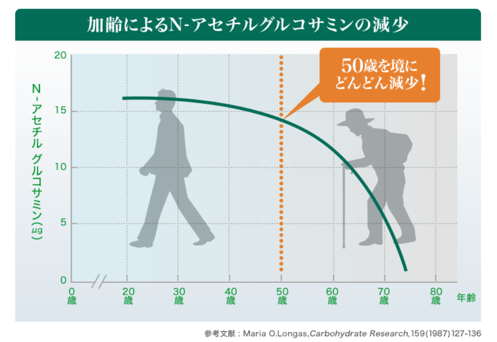 年齢とともに、日々の生活がきつくなってしまうことから、グルコサミンやコンドロイチンを摂ることはとても大切。