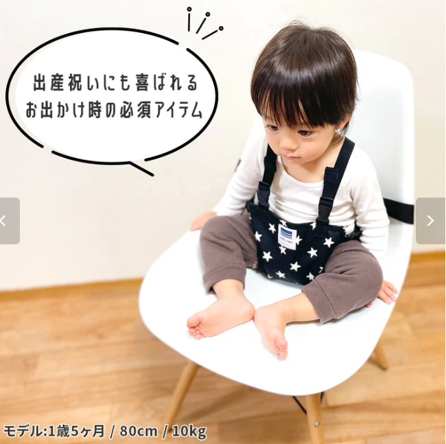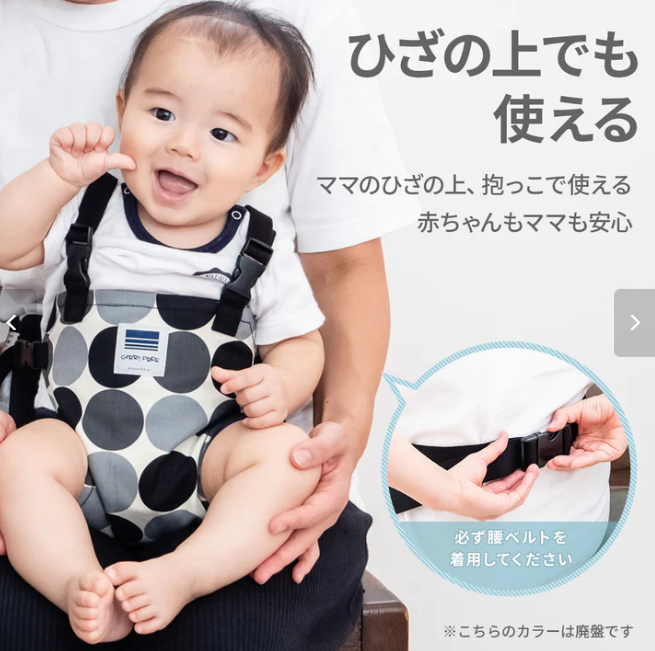 また椅子だけでなく大人の膝の上でも使える優れもの、装着も簡単。