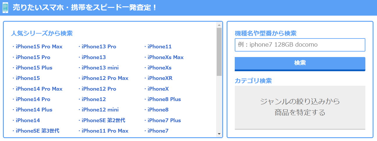 売りたいスマホや携帯を検索し、ある程度の相場を調べることが出来ます。