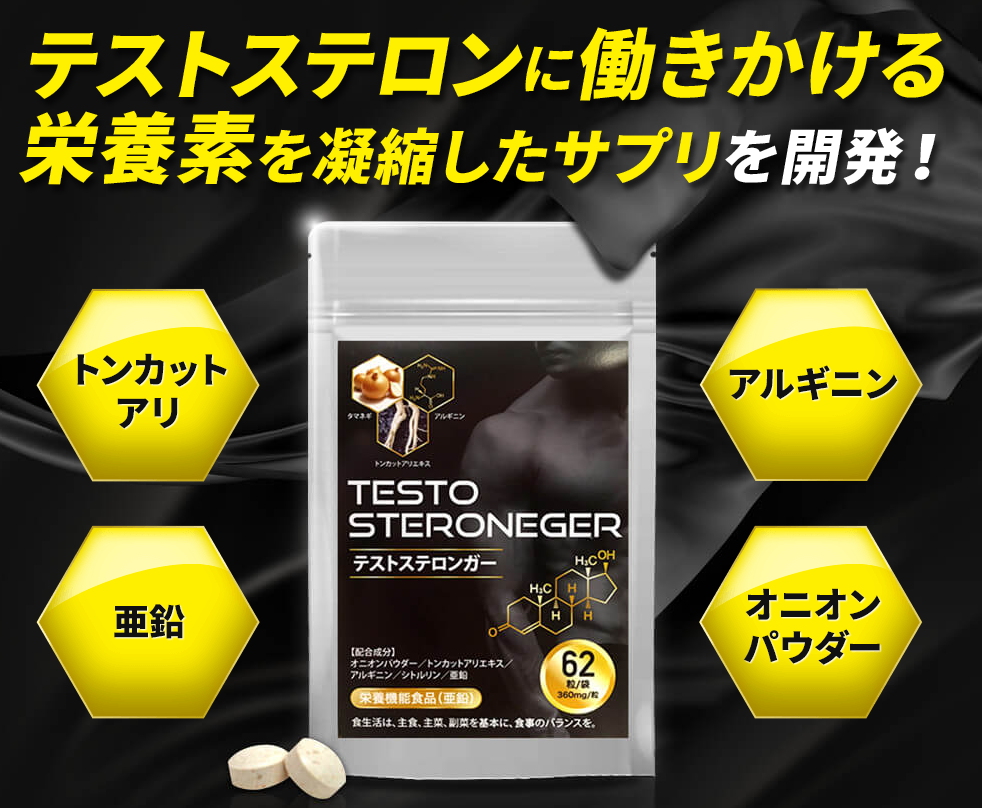 【テストステロンガー】とは「たくましさ・スタミナ・若々しさ」男の様々な欲求に大切な栄養素を詰め込んだサプリ。
