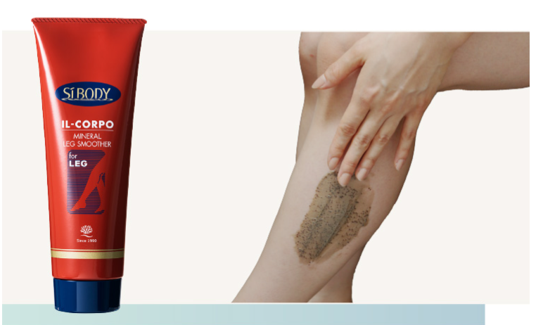 ミネラルレッグスムーサー】とは、ミネラルを豊富に含む雪塩と薬草ハーブエキス、海藻エキスが配合され美脚にアプローチする脚用のマッサージクリーム。