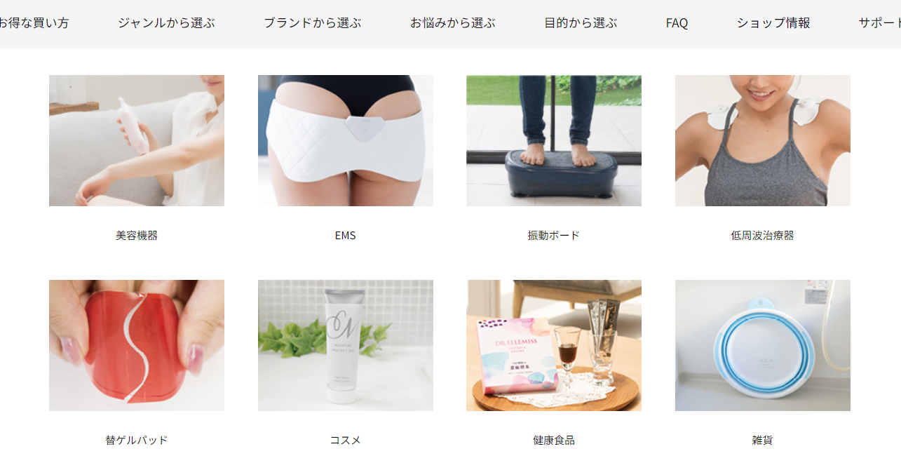 フィットネスや美顔器、健康器具、化粧品など多くの商品を取り扱っており、プレゼントにも大人気。