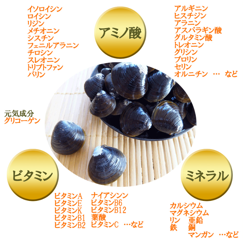 しじみは「栄養たっぷりの宝庫」と言われ、必須アミノ酸が豊富に含まれています。