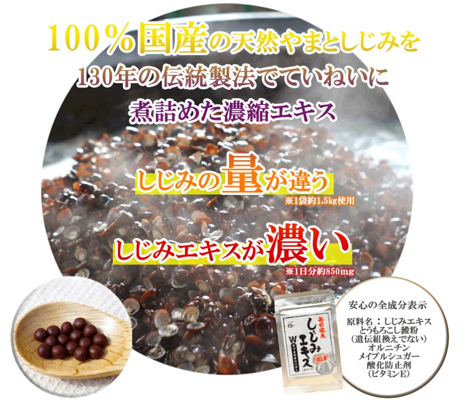 しじみの煮汁を長時間煮詰めてギュッと閉じ込めた、こだわった貴重なサプリです。